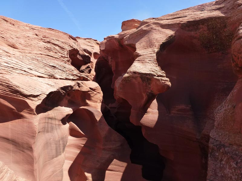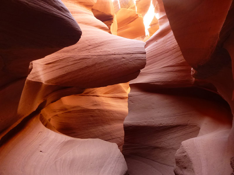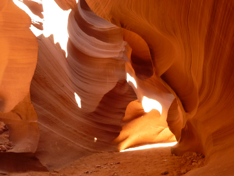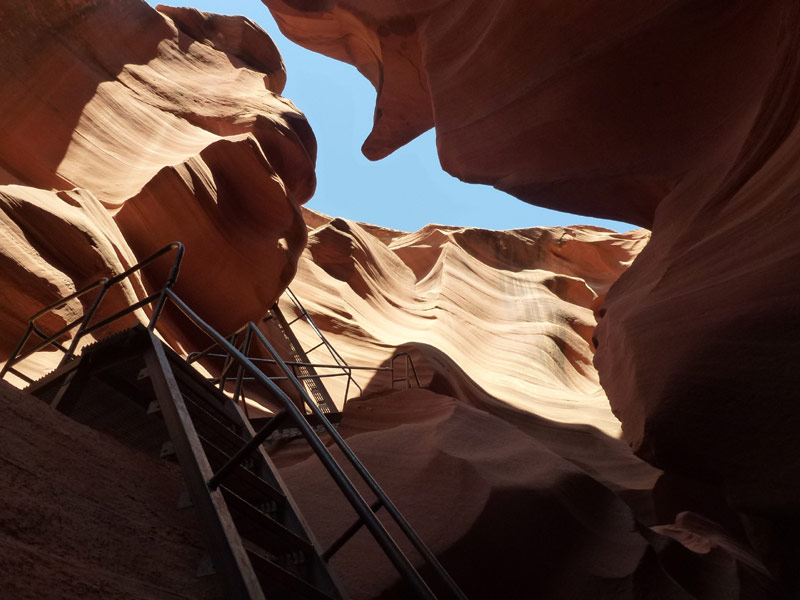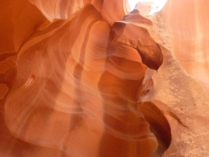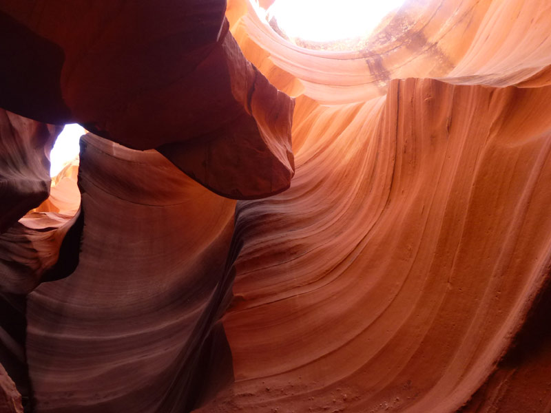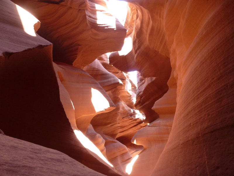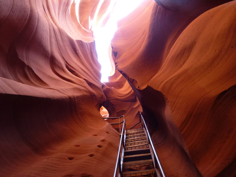 Fazit: Der Besuch des Lower Antelope Canyon war für uns die bessere Wahl. Der hohe Preise, der durch eine Jeepfahrt zum entferntliegenden Eingang (kein Rundkurs), des Upper Antelope Canyon, gefordert wird, ist für das Gebotene, nach meiner Meinung nicht gerechtfertigt. Wer auf ein paar Fotos mit den Beams, verzichten kann, wird mit dem Besuch des Lower Antelope Canyons, voll auf seine Kosten kommen. |