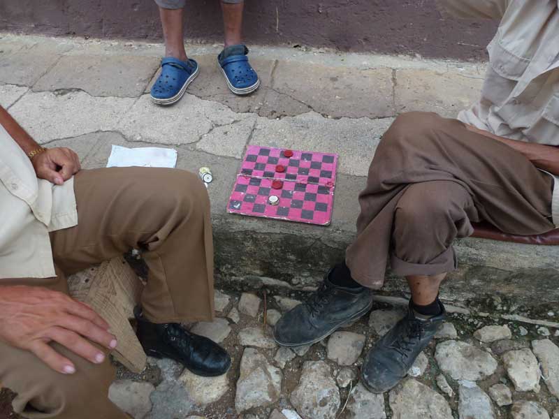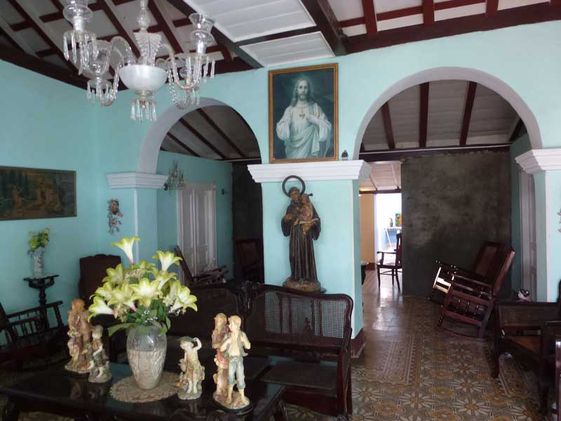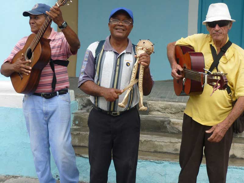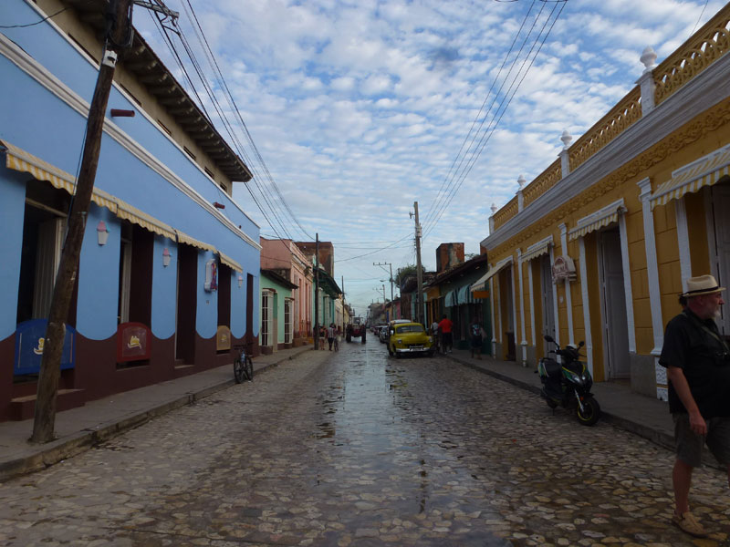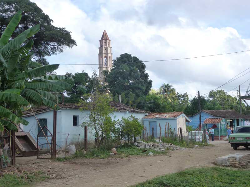Das Taxi holt uns für die bei Cubatur gebuchte, 3 Tages Tour, nach Santa Clara, Trinidad, Mills Valley und Topes de Collante direkt an unserm Domizil in Havanna ab. Von Havanna geht es 350km nach Santa Clara. Außer dem Denkmal mit Mausoleum und dem kleinen Museum über Che Guevara gibt es nichts von Bedeutung das sich lohnen würde Santa Clara zu besichtigen. Unser Reiseleiter (Taxifahrer) meinte ein Besuch des Mausoleums würde sich nicht lohnen, da es nichts zu sehen gäbe und außerdem eine riesige Schlange Touristen am Eingang wartete. So sparten wir uns den Besuch und fuhren direkt weiter nach Trinidad. Ein im spanischen Kolonialstil erbaute Stadt die weitgehend ihr ehemaliges historisches Stadtbild weitgehend erhalten hat. Um dem Plaza Major finden sich einige Lokale in dem ab Nachmittag die übliche kubanischen Musik gespielt wird. Die Bahnstrecke von Trinidad in das Valle de los Ingenios (Tal der Zuckermühlen) bis zur Plantage Manaca Iznaga führt durch eine reizvolle Landschaft und Plantagen mit Zockerrohranbau. |