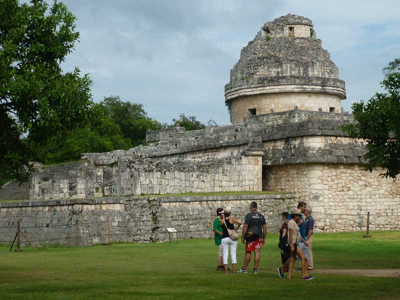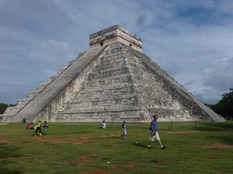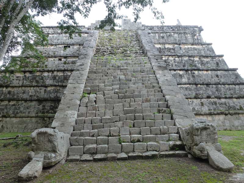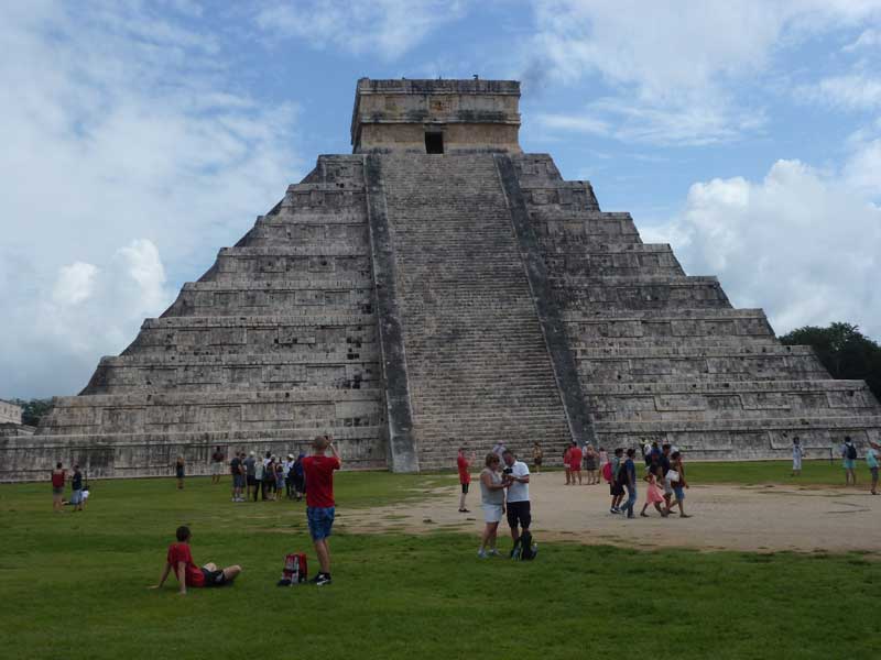 Die weitläufige Tempelanlage, Chichén Itzá , ist einer der schönsten Mayastätte in Mexiko. Durch die Nähe zur Rivera Maya, wird sie natürlich entsprechend besucht. Die große Pyramide, mit ihren 91 Stufen ist der Mittelpunkt der Anlage. Neben einer Säulenhalle, wurde hier schon Astronomie in einem Observatorium betrieben. Yucatan, besteht aus einem riesigen Kalkkessel, der so vermutet man, durch einen Meteoriteneinschlag gebildet wurde. Regenwasser sickert durch das poröse Gestein, unterirdische Flüsse leiten das Wasser in das Meer. Durch Einsturz der Kalkdecke werden tiefe Wasserlöcher gebildet, man vermutet daher im Yucatan, einer der weltgrößten Höhlensysteme im Kalkstein. Diese wurden von den Mayas als Operstätte genutzt, in dem Cenote von Chichen Itza, wurden mehrere menschliche Skelette gefunden. |
