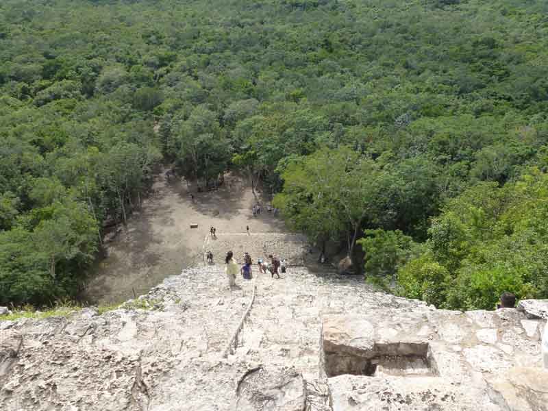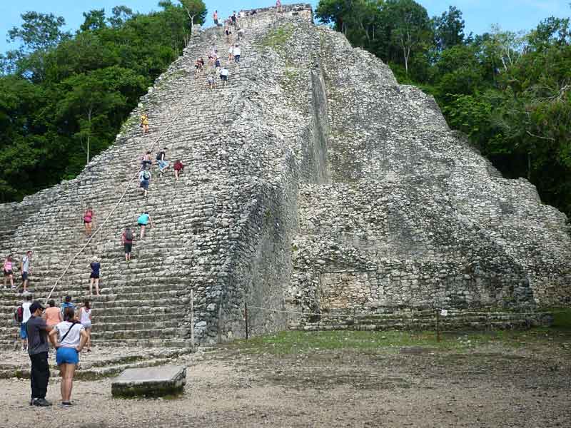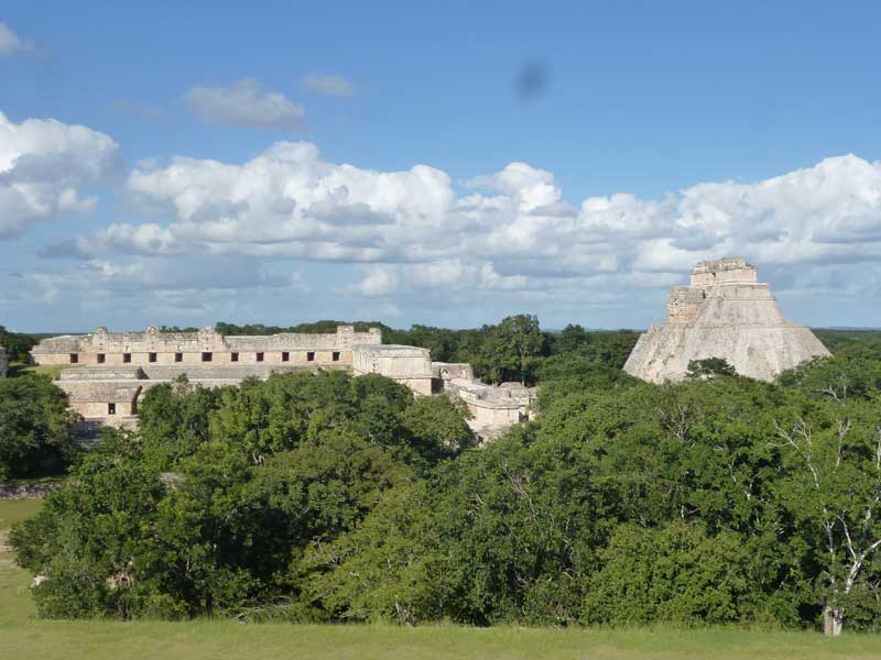 Deshalb ist es auch nicht verwunderlich, dass alle bekannten Mayastätte entsprechend frequentiert werden. In der Vorsaison sind die Preise hier noch einigermaßen moderat, Weihnacht ist kein Bett mehr zu bekommen. Wir brechen zu unserer einwöchigen Rundreise für den Besuch von Uxmal, Kabah, Izamal und Merida auf. Coba, Tulum, und Chichén Itzá, lassen sich leicht über Tagestouren erreichen. Die Pyramiden von Coba, liegen mitten im Urwald, die höchste Pyramide, Mexikos, bietet einen fantastischen Rundblick über den tropischen Wald. Mit einer Fahrrad-Rikscha lassen wir uns, den langen Weg zu den Ausgrabungen, strampeln. Wir fahren weiter nach Uxmal und Merida. |