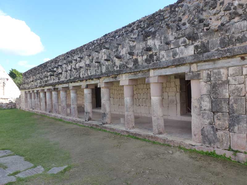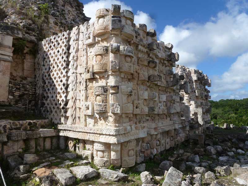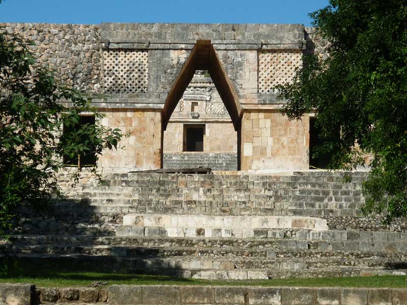 Für mich ist Uxmal, neben Palenque und Chichen Itza, einer der schönsten Mayastätten in Mexiko. Nicht so viele Touristen verirren sich nach Uxmal, so dass man hier ungestört die Tempelanlage besichtigen kann. Am Abend wird eine Lightshow geboten, die man sich, sofern man nicht Spanisch spricht, getrost versäumen kann. Etwas langatmig wird in Spanisch die Geschichte der Mayas in Uxmal erklärt, nach einiger Zeit wiederholen sich die Lichteffekte so dass kaum Stimmung aufkommt und man sich die Stunde sparen kann.Wir wohnten in einem hübschen Familienhotel in Santa Elena, The FlyCatcher Inn 10km von Uxmal entfernt. Von hieraus sind einige sehenswerte Maya-Ausgrabungen Kabah, erreichbar, leider haben wir nur eine Nacht gebucht da wir leider nicht länger Zeit haben am 9.12. müssen wir wieder in Cancun sein. |