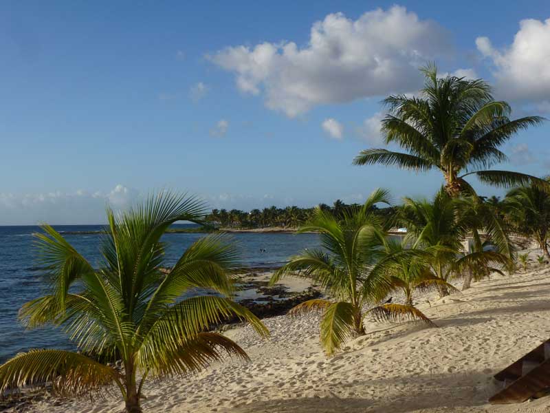 Noch ist Vorsaison, deshalb waren wir die einzigen Hotelgäste. Sicher gibt es für den Preis von $135 /Tag in Cancun, Playa del Carmen und Tulum (Rivera Maya) schönere Hotelanlagen, aber dafür ist man auch fern vom Trubel, der von Amerikaner geprägten Ballermann Atmosphäre. Der Nachteil, nur mit einem Leihfahrzeug können günstigere Restaurants besucht werden, das Hotelrestaurant ist für mexikanische Verhältnisse zu teuer. Der weiße Sandstrand und das warme Meerwasser sind ideale Vorraussetzungen sich hier zu erholen. Von hier lassen sich die Maya-Tempelanlagen, . Tulum, Coba und Chichén Itzá, in Tagesausflüge erreichen. |