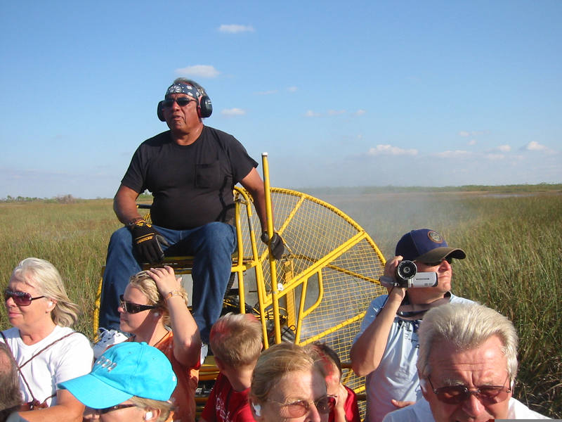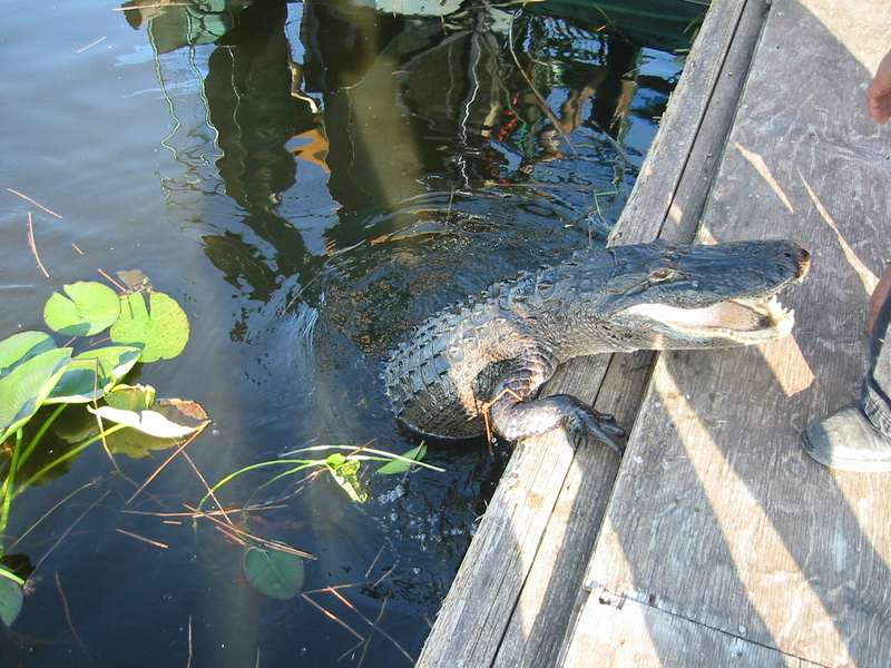 Am nächsten Tag fahren wir auf Tamiami Trail ostwärts. Hier laden immer wieder Seitenwege mit Kanälen zu verweilen ein. Hier kann man in sicherer Entfernung Alligator beim Sonnenbaden antreffen. Selbstverständlich buchen wir eine Fahrt mit einem Propeller Speedboot. Die Aligatoren wissen das und lassen sich gerne "streicheln" da sie wissen ein Häppchen Hühnerfleisch ist ihnen sicher. Am Abend treffen wir auf dem Parkplatz des Miccoukee Casino & Resort ein. Das Buffet im Casino ist empfehlenswert. |