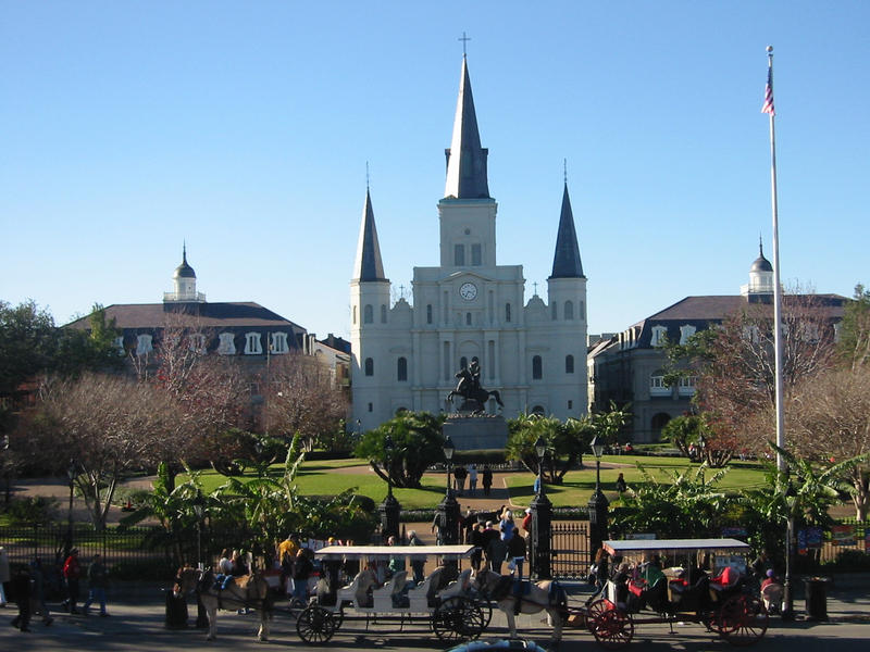 10.02. Oak - Alley Plantation, Auf dem Weg nach New Orleans, fahren wir am Missisipi mit herrlichen Südstaaten Anwesen entlang. Die bekannteste Plantage ist die Oak - Alley Plantiation mit ihrer berühmten Eichenallee. Hier wird die Geschichte, "Fackeln im Sturm" war, denn auch hier wird man von stillecht gekleideten Schönheiten (Southern Belles) empfangen und durch das Haus geführt. Je näher wir New Orleans kommen, desto mehr werden die gewaltigen Schäden die durch den Hurrikan Katrina im August 2005, verursacht wurden, sichtbar. Da wichtige Brücken noch gesperrt sind, müssen wir den Umweg über die I10 nehmen um nach New Orleans zu gelangen |