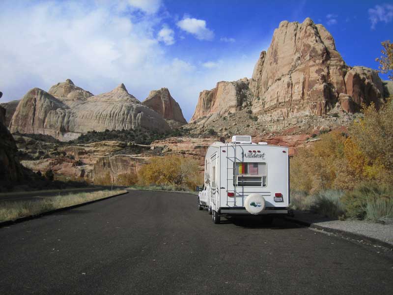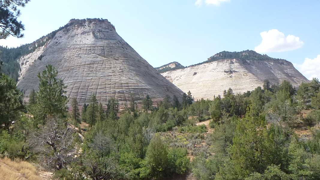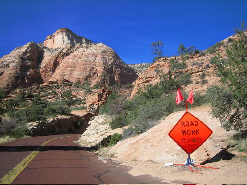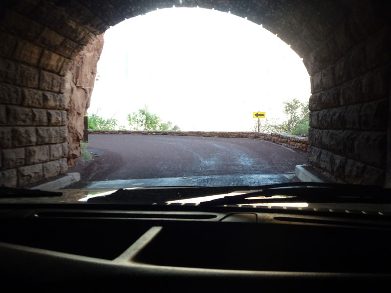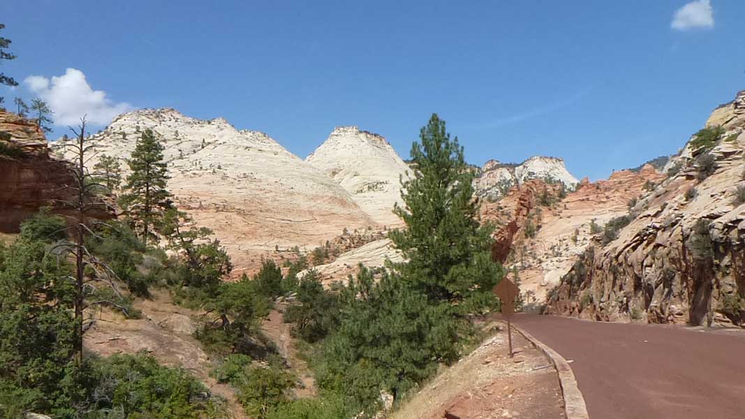 Ab der Canyon Junction, windet sich die Strasse US9, über Serpentinen, Zion Mount Carmel Highway, mit atemberaubender Aussicht auf die steilen, sekrecht stehenden Felswände des Canyons um aus dem Tal, über ein Tunnel, auf ein Hochplateau zu kommen. Das Hochplateau wurde aus einer anderen geologischen Struktur gebildet wie das Tal. Duch zuerst muss das längste Tunnel im Park die den Weg in die Hochebene ermöglicht, durchfahren werden. In der Hochsaison wird der Durchgangsverkehr aufgrund des Tunels für Fahrzeuge ab 3 Meter wechselseitig geregelt und kostet $15. Die Felsen aus Sandstein auf dem Hochplateau, wurden durch Wind und Regen so bearbeitet, dass sie aussehen als wären sie jahrelang mit einem riesigen Sandstrahlgebläse geschliffen worden. Über den East Entrance verlassen wir den Park um von hier über die US 89 zum Bryce Canyon oder Kanab (Page) zu fahren. |